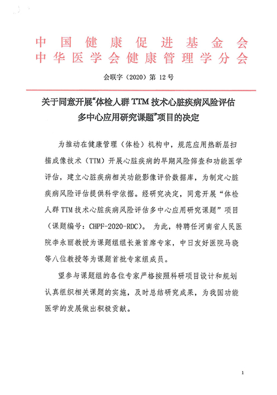 體檢人群TTM技術(shù)心臟疾病風(fēng)險(xiǎn)評(píng)估多中心應(yīng)用研究課題項(xiàng)目正式啟動(dòng)